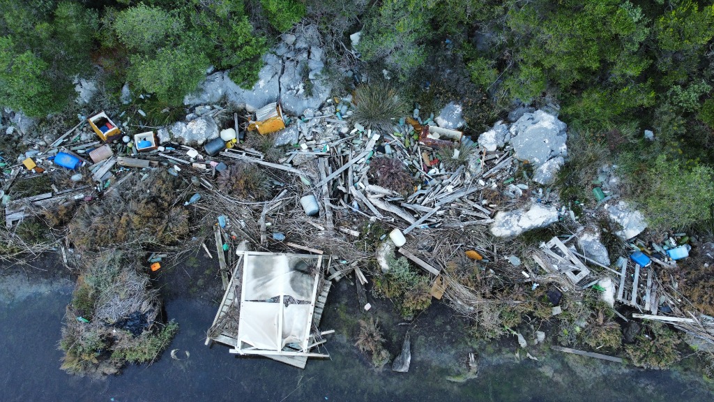 Opis: Hrpa smeća nasuprot lučice,uz obale otoka Osinja. Slikano dronom.