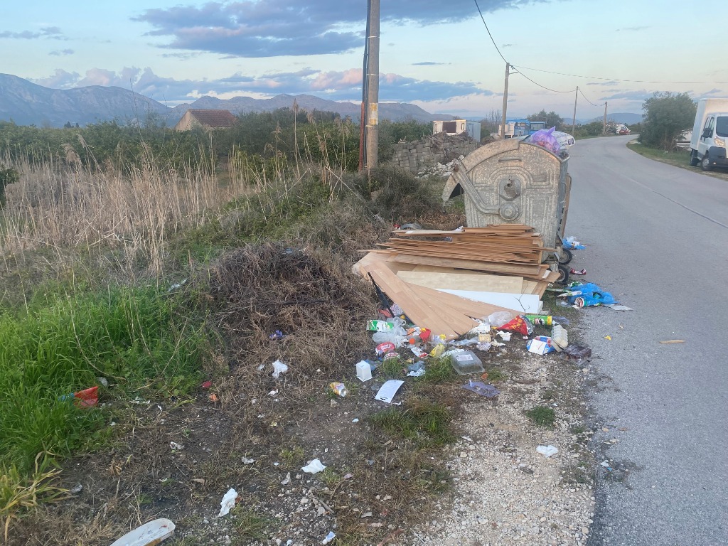Opis: Pogotovo za vrijeme ljetne sezone, odlažu se razne vrste otpada uz kantu jer kapacitet kontejnera je premali. Ljudi sa okolnih polja napune u kratkom roku kontejner sa npr. velikom količinom ambalaže i bidona od poljoprivrednih sredstava tako da nema mjesta za otpad iz okolnih kućanstva. Otpad se odlaže pokraj kante na otvorenom. Vjetar i životinje raskinu vreće i otpad se raspe okolo u prirodi. Kontejner treba maknuti sa te lokacije i podijeliti kante po kućanstvu.